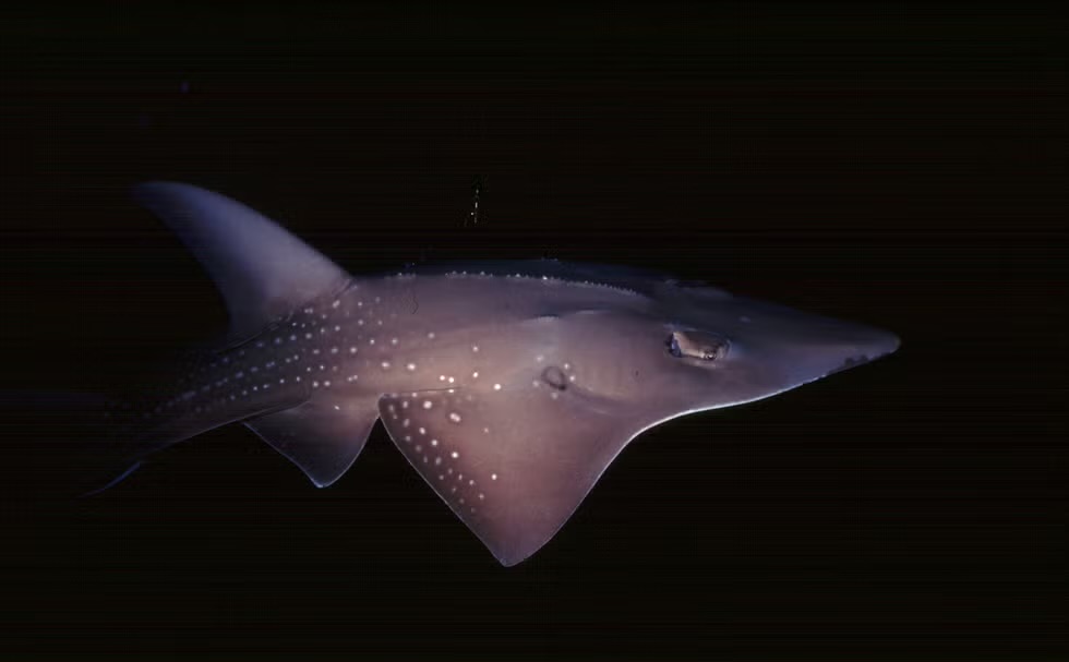 Deze roggen wordt ook een kraakbeenvis genoemd en behoort tot de Rhinobatidae soort en vormen een soort schakel tussen haaien en roggen. Met hun haaiachtige lichaam en platte kop, die doet denken aan een rog, is het niet gek dat ze ook wel “gitaarvis” worden genoemd.