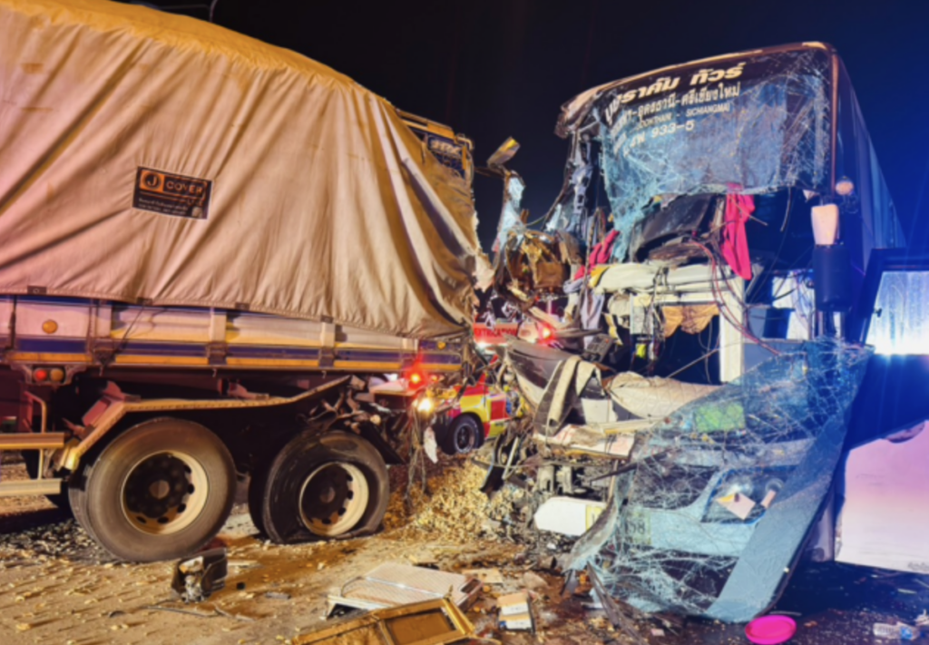 ISAAN: Gisteren in de late avonduren vond een ernstige aanrijding plaats op de Mittraphapweg in Khon Kaen, waarbij een bus en een 18-wielige vrachtwagen betrokken waren. Het ongeval resulteerde in 27 gewonden en heeft tot een diepgaand onderzoek geleid door de lokale autoriteiten.