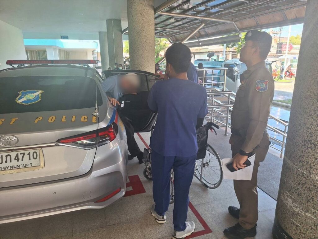 Bij aankomst troffen ze de man aan in duidelijke pijn. Omdat hij zijn been niet kon belasten, bracht de politie hem naar het Pattaya Patmakhun-ziekenhuis voor een medische controle.