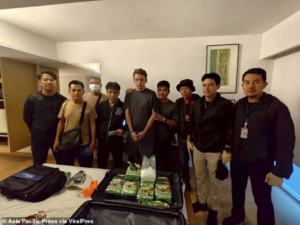 BANGKOK:Een 23-jarige Brit uit High Wycombe is gearresteerd in Bangkok nadat hij volgens de Thaise politie meer dan 9 kg crystal methamfetamine in een koffer zou hebben geprobeerd te smokkelen. De officiële verhaallijn klinkt simpel: de koffer werd opgepikt van een man met de bijnaam “Snoopy” in een uitgaansgebied en de verdachte zou ongeveer £460 (circa €535) hebben gekregen voor zijn aandeel.