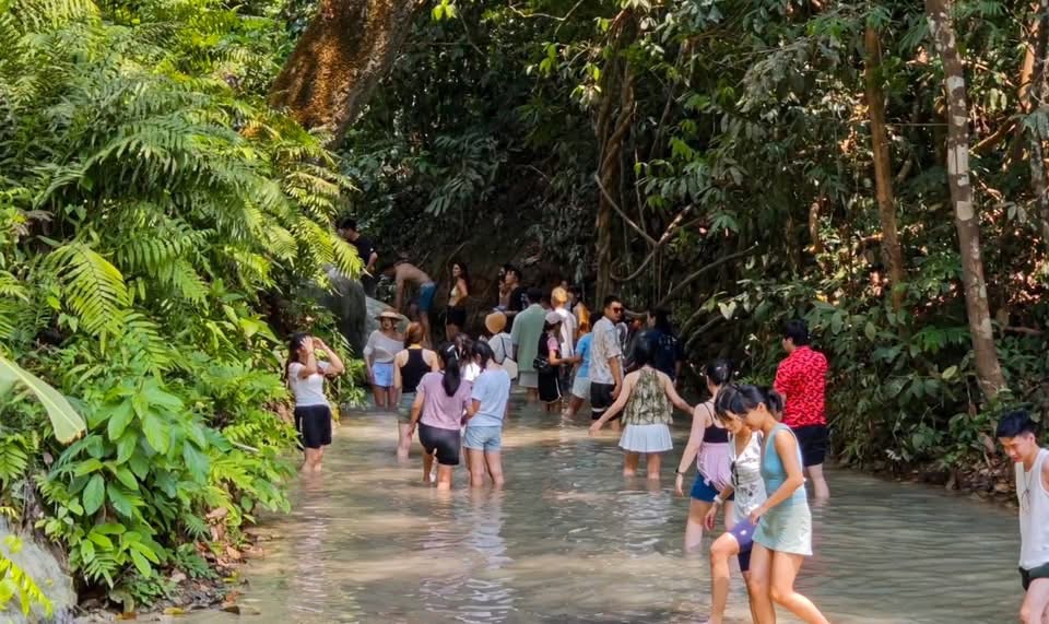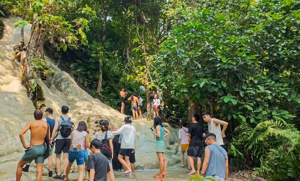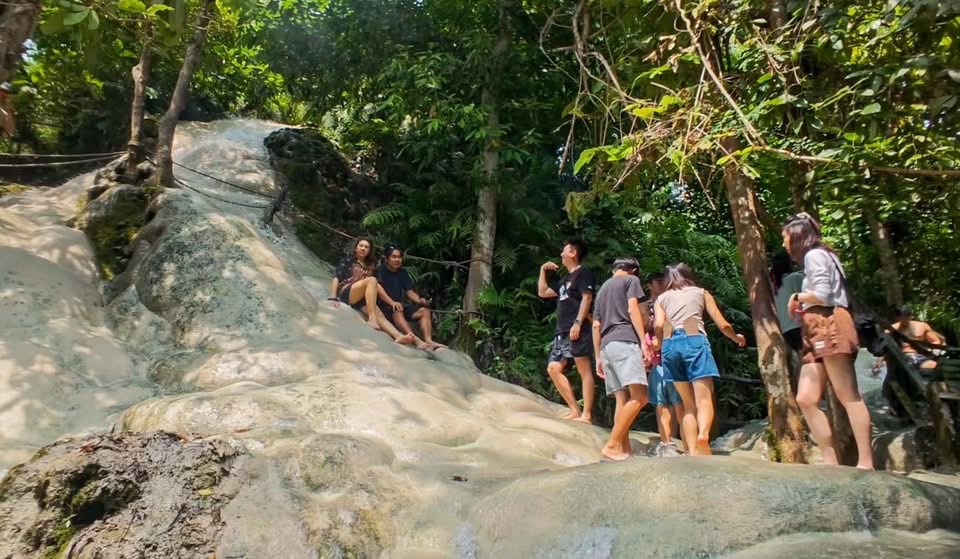 CHIANG MAI: Terwijl de temperaturen in de provincie Chiang Mai oplopen tot boven de 40 graden Celsius, zoeken zowel lokale als internationale toeristen verfrissing bij de Bua Tong Waterval in het Mae Taeng-district. Deze unieke waterval trekt dagelijks duizenden bezoekers met een bijzondere eigenschap: het is mogelijk om de waterval te beklimmen zonder uit te glijden, dankzij de kalksteen die de rotsen een schuurpapierachtige textuur geeft.