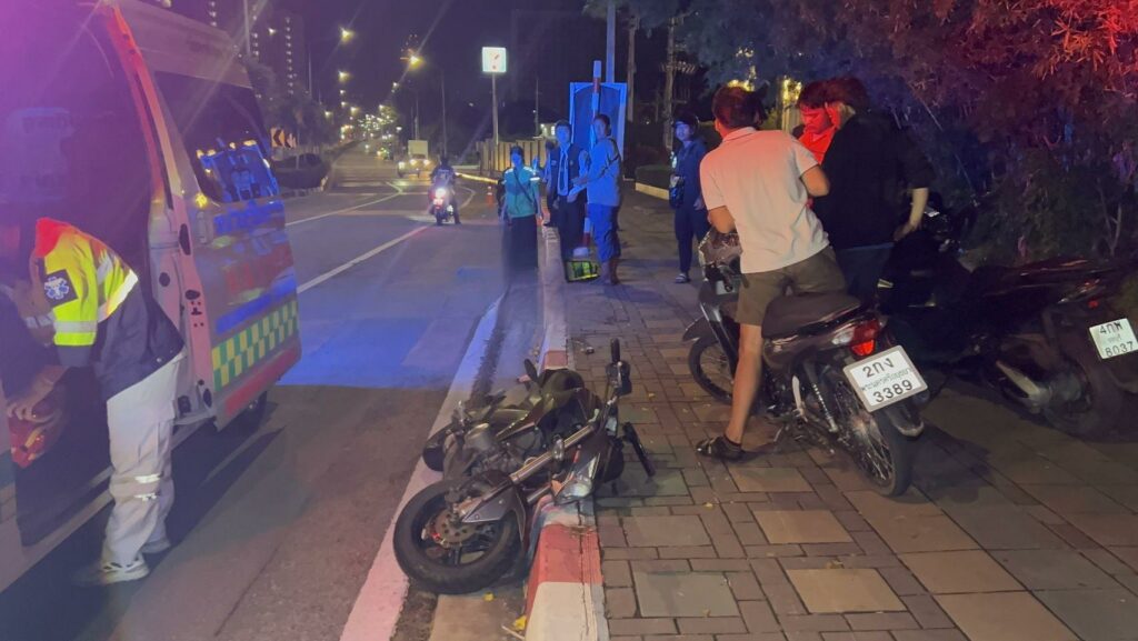 Een 33-jarige getuige vertelde dat ze over de Jomtien Second Road reed toen ze plotseling moest uitwijken voor een streetfoodkar die langs de weg stond. Ze verloor de controle, knalde tegen de trottoirband en viel van haar motor. Die getuige belde meteen de hulpdiensten.