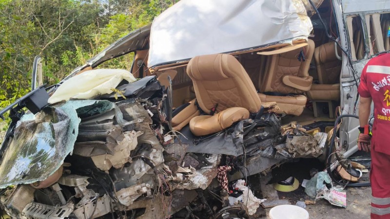 Het voorval vond gisteren rond 13.50 uur plaats op de Nong Han–Phibun Rak-weg. Hulpdiensten arriveerden snel en bevrijdden de negen passagiers uit het zwaar beschadigde voertuig. Acht passagiers raakten gewond, waarvan drie ernstig. Eén van hen, Khun Thiang Mokhom, overleed later aan zijn verwondingen.