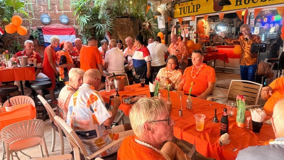 PATTAYA: Gisteren heeft de Nederlandse NVTP-vereniging zich op een bijzondere manier weten te profileren door de organisatie van een uiterst gezellige Koningsdag. Onder de deskundige leiding van Diny van Dieten en Annelies Lutjes vond deze feestelijke bijeenkomst plaats in het gezellige Tuliphouse, gelegen aan het Jomtien Beach.