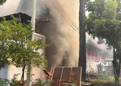 PHETCHABURI: Gisteren heeft een brand het slaapgebouw van de monniken bij Wat Yai Suwannaram in Phetchaburi verwoest, met schade in de miljoenen en een onderzoek naar de oorzaak.