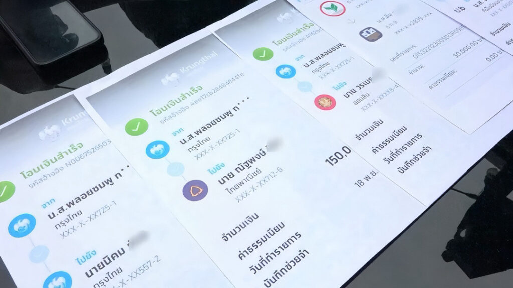 Ze had geen cash meer en verkocht goud en leende 50.000 baht van een vriend. Pas toen haar man zich ermee ging bemoeien, zag ze in dat het een oplichterij was. Op 19 november stapte ze naar de politie en vroeg de bank om de rekeningen te blokkeren.