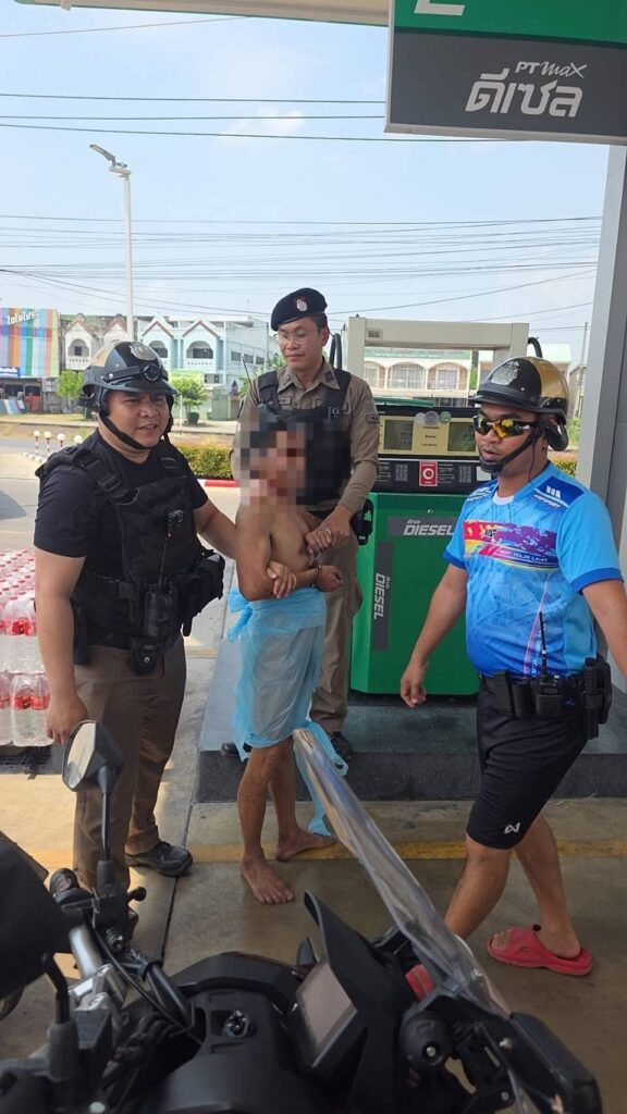 ISAAN: In Khon Kaen hadden medewerkers van een PT-tankstation gistermorgen rond 11.30 uur een wel heel bijzondere gast: een naakte man die tussen de lege pompen liep. Hulpdiensten kwamen snel ter plekke; de man sprak koeterwaals, dus de politie dekte hem even met een stuk doorzichtig plastic toe totdat de reddingswerkers arriveerden, die bedekte hem met een laken en brachten hem naar Phu Wiang-ziekenhuis.