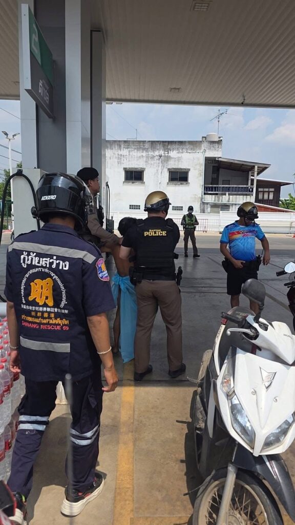 Bij het tankstation stond een wit-rode Honda zonder kenteken, vermoedelijk zijn motor, dat volgens getuigen waarschijnlijk zonder benzine kwam te staan. Omstanders zeggen dat hij naakt vanuit het naburige Nong Na Kham naar Phu Wiang was gereden.
