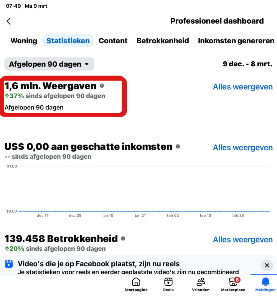 Vandaag werden de weergavecijfers van de afgelopen 90 dagen door Facebook bekendgemaakt, en deze liegen er niet om: meer dan 1,6 miljoen weergaven. Hierbij zijn de weergaven van platforms zoals X, WordPress en Instagram niet meegeteld.