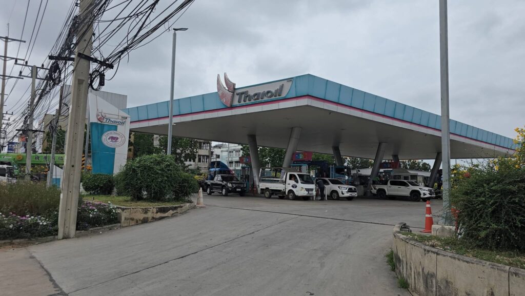 SRI RACHA: Sinds vanochtend staan honderden automobilisten en vrachtwagenchauffeurs in lange rijen bij het Thailand Oil‑tankstation voor de raffinaderij in Sriracha. Reden: het station adverteert dat klanten onbeperkt kunnen bijtanken, inclusief het vullen van jerrycans en grote tanks.