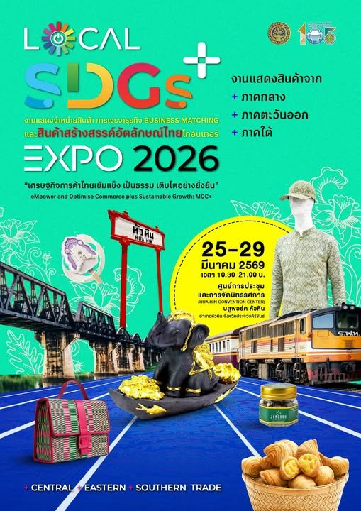 HUA HIN: Van 25 tot en met 29 maart 2026 staat het Hua Hin Convention Center in het teken van de LOCAL SDGs+ EXPO! Tijdens deze vijf dagen vol handel en netwerken kun je meer dan 200 stands ontdekken met producten van producenten uit 39 verschillende provincies in Thailand. Een waar festijn van lokale specialiteiten en SDG-gecertificeerde goodies!