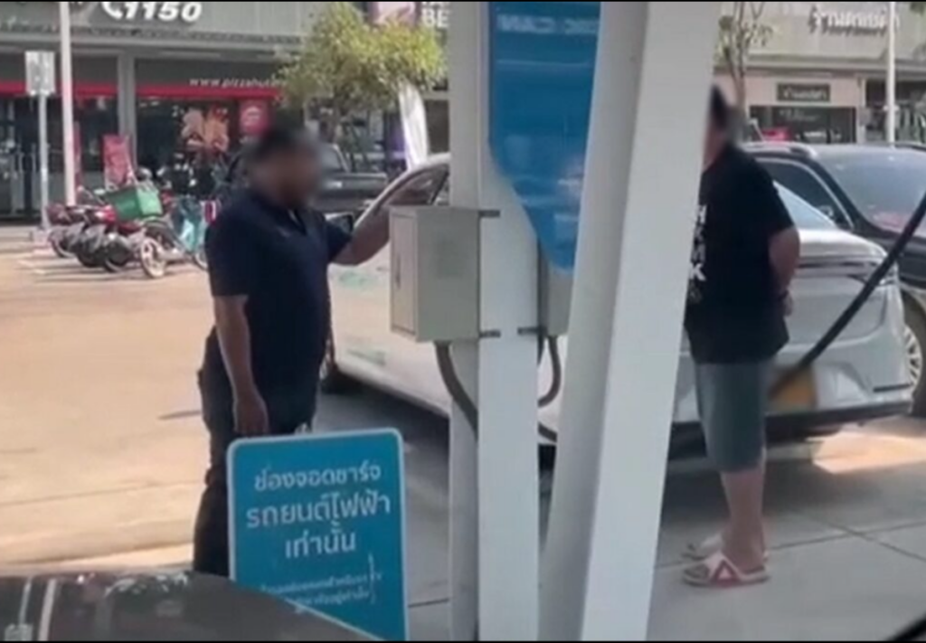 PATTAYA: Gisteren liep het flink uit de hand bij een PTT-tankstation in Pattaya, waar twee eigenaren van elektrische auto’s het met elkaar aan de stok kregen over wie er als eerste mocht opladen. Het conflict ontstond bij de wachtrij voor de laadpalen en mondde na verhitte woorden uit in een korte, fysieke confrontatie.