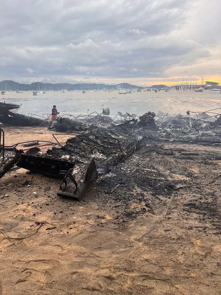 PHUKET: Vanmorgen in alle vroegte zijn circa twintig volledig bijgetankte speedboten in vlammen opgegaan bij de Chalong Pier in Phuket. Volgens Khun Adul Chuthong, de plv. gouverneur van Phuket, begon de brand rond 4 uur ’s ochtends op een van de boten in de pier van het district Muang. Sterke wind wakkerde de vlammen aan, waardoor het vuur zich snel verspreidde naar nabijgelegen boten.