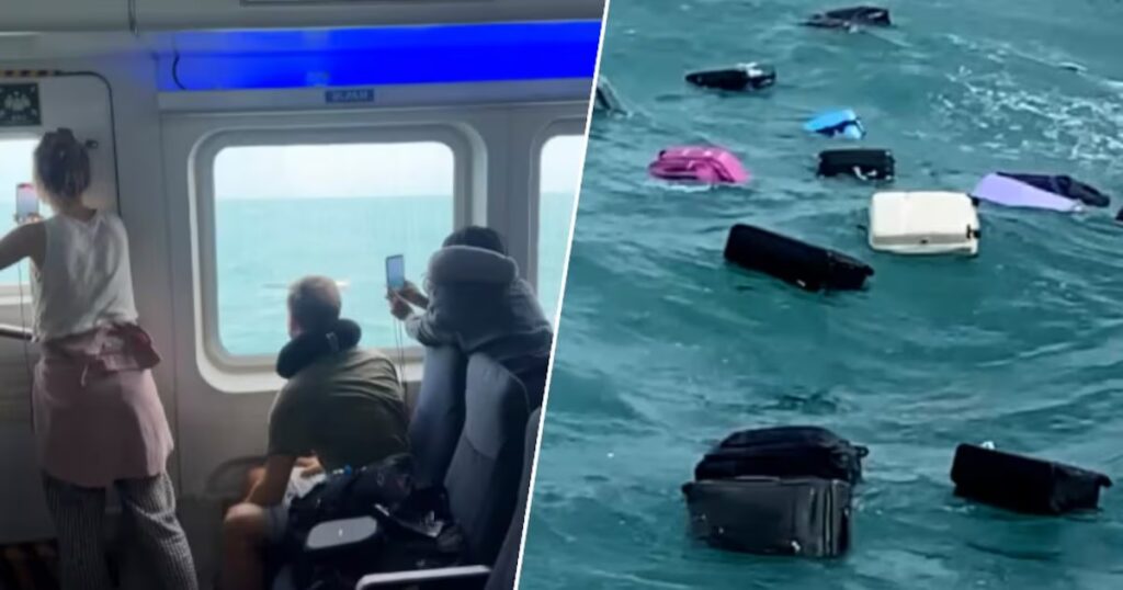 KOH SAMUI: Voor een groep toeristen in Thailand liep een gewone ferrytocht totaal in het honderd. Terwijl ze op weg waren naar een ander eiland, zagen ze ineens hun koffers voorbij drijven op de golven. De bagage belandde in het water omdat de kapitein snel moest manoeuvreren om een onverwacht hoge golf te vermijden.