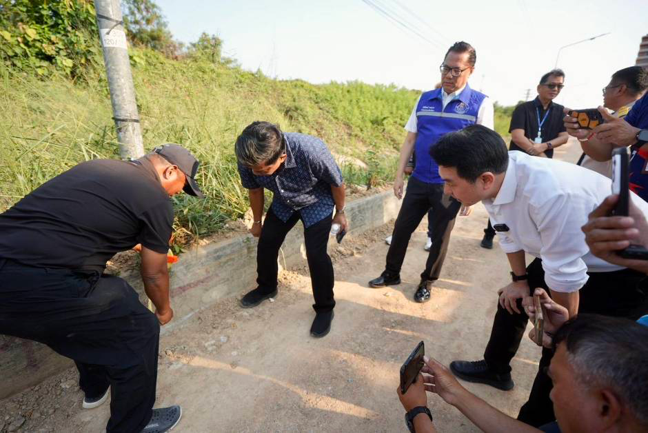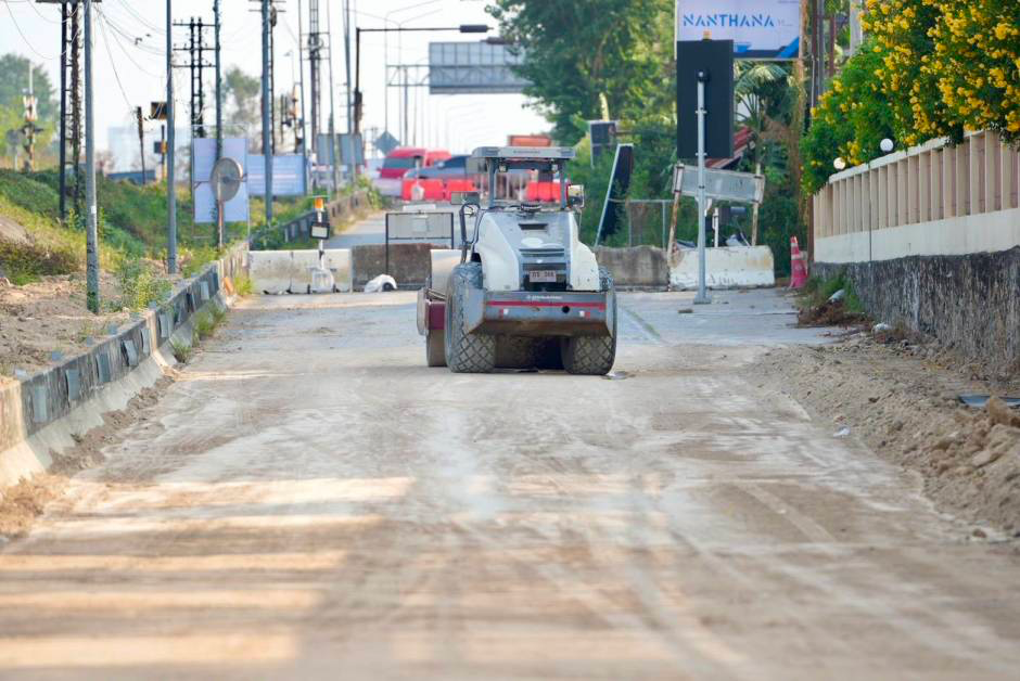 PATTAYA: Gisteren bezocht ik als onbezoldigd verslaggever de werkzaamheden aan de parallelweg langs de spoorlijn tussen de kruisingen Khao Talo en Wat Tham Samakkhi. Burgemeester Poramet Ngampichet was toevallig ter plaatse en bekeek samen met zijn entourage de voortgang van de werkzaamheden.