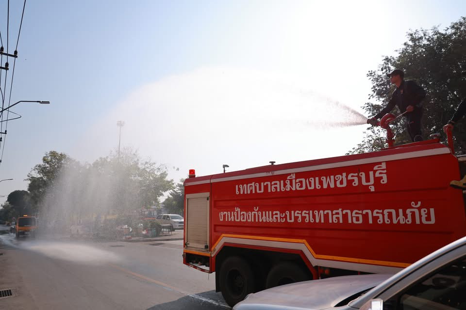 HUA HIN: De stad Phetchaburi heeft actie ondernomen om de toenemende PM2.5-vervuiling aan te pakken. Plaatsvervangend gouverneur Phakphat Songwatthanayut inspecteerde recent de inzet van waterwagens die smog in de lucht spuiten. Deze maatregel is een reactie op zorgwekkende luchtkwaliteitsmetingen die de nationale veiligheidsnormen overschrijden.