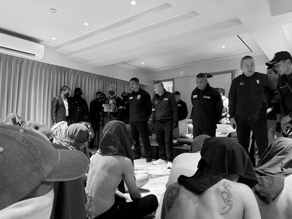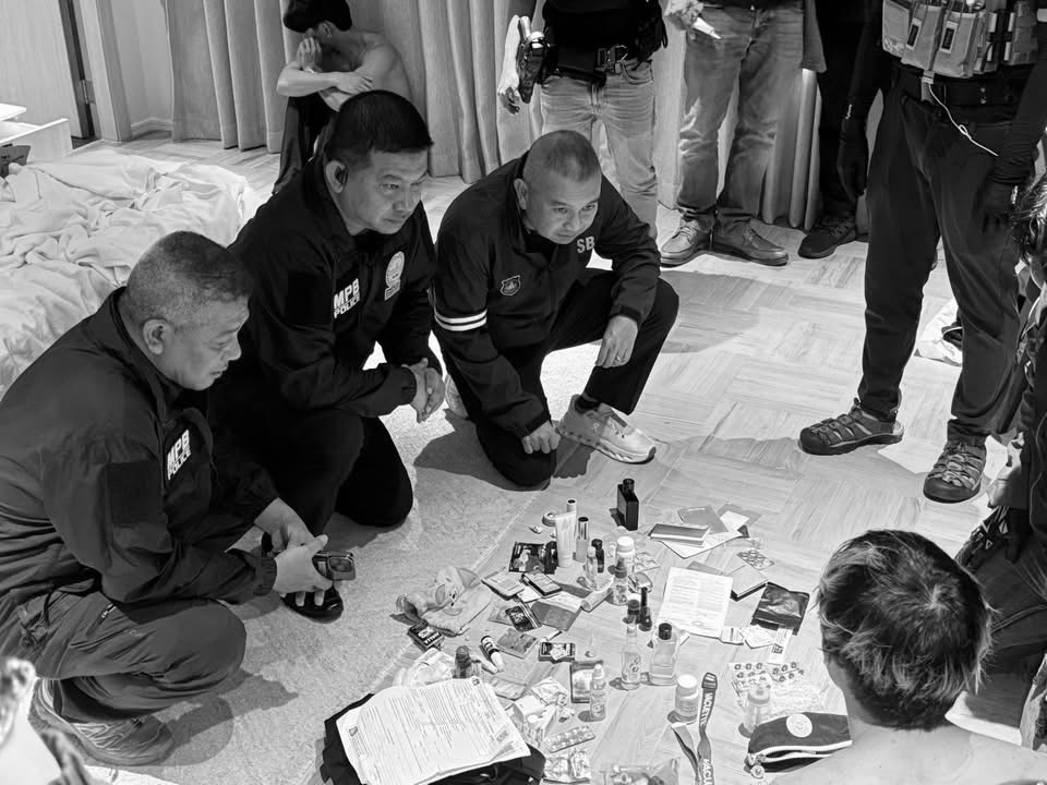BANGKOK: De politie heeft vannacht een flinke inval gedaan bij een drugsfeest in een chique hotel aan Sukhumvit Soi 13. Rond half één ’s nachts werden 29 mannen, waaronder 28 Thai en één Filipijn, opgepakt.