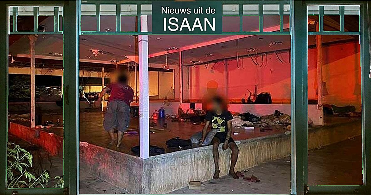 KHON KAEN:- De politie arresteerde twaalf daklozen die een verlaten restaurant in de buurt van Bueng Kaen Nakhon hadden bezet, na talloze klachten van de lokale bevolking over ongeregeldheden. De politie werd door de eigenaar van het pand gewaarschuwd voor een groot aantal daklozen dat een oud restaurant bezette, wat voor omwonenden onrust veroorzaakte. Er werden agenten gestuurd om de situatie onder controle te krijgen, en de twaalf personen werden vervolgens gearresteerd wegens hun onrechtmatig verblijf.