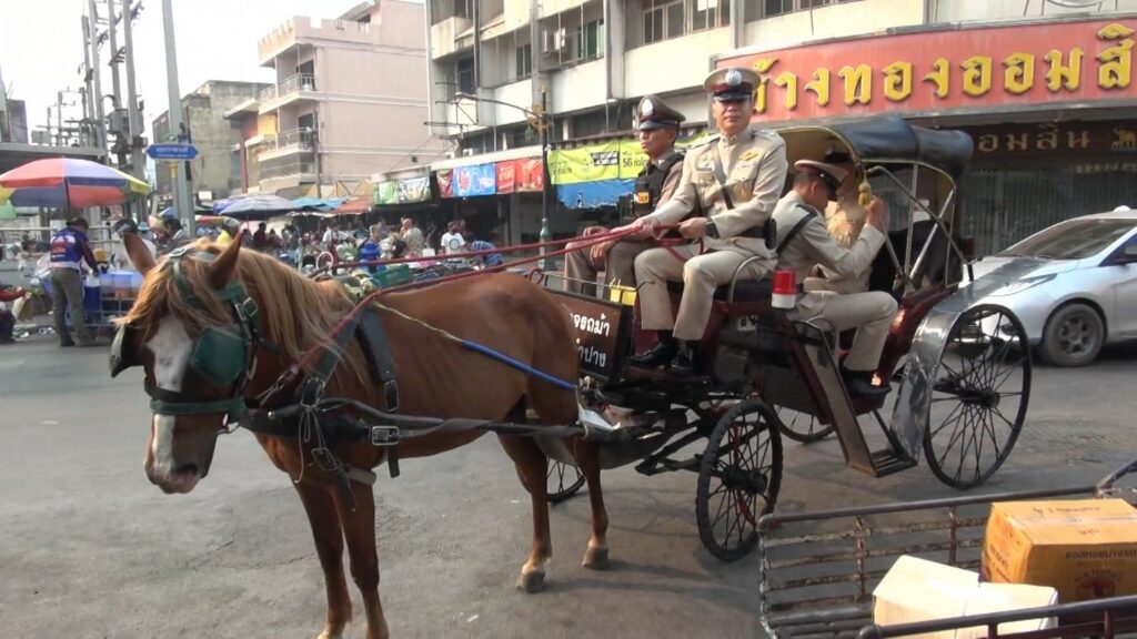 CHIANG MAI: Voor het Songkran-festival heeft de politie van Lampang tijdelijk de “paarden patrouille” ingevoerd: een charmante maar doelgerichte maatregel om openbare orde te handhaven, toeristen gerust te stellen en tegelijkertijd brandstof te besparen. Geselecteerde agenten volgden een praktijkgerichte opleiding bij de Lampang Paardentaxi Associatie om koetsjes veilig te besturen; zij patrouilleren nu naast reguliere auto- en motorpatrouilles.