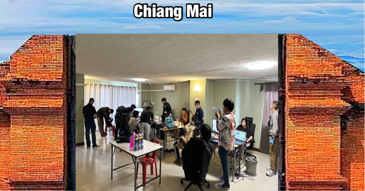 CHIANG MAI:- De politie heeft een Taiwanees online goknetwerk in Chiang Mai opgerold, met 19 arrestaties. De invallen werden geleid door generaal Worapong Kamlue, en vonden plaats op drie locaties na tips over verdachte huurcontracten.