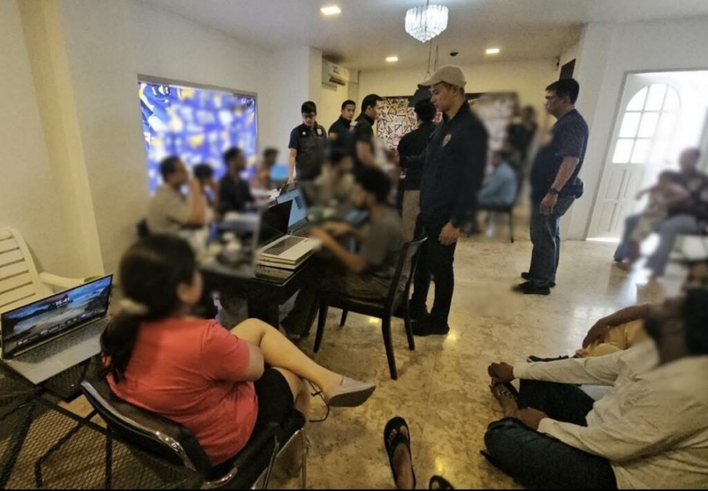 De inval, uitgevoerd rond 15:45 door Immigratiepolitie Chonburi en de toeristen politie van Pattaya, leidde tot de vondst van een twee verdiepingen tellende woning waarin ongeveer 20 personen aan laptopcomputers werkten, omringd door zo’n 30 mobiele telefoons. Politiebronnen omschrijven de situatie als een callcenterachtige operatie, niet als een normaal verblijf.