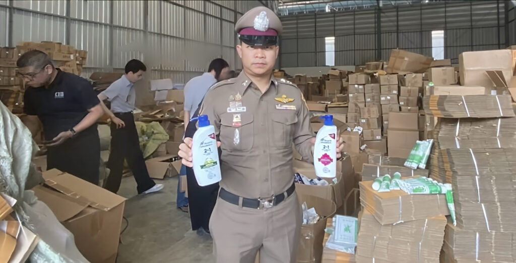 Politie valt in Centraal-Thailand een magazijn binnen en treft een partij nagemaakte toiletartikelen aan