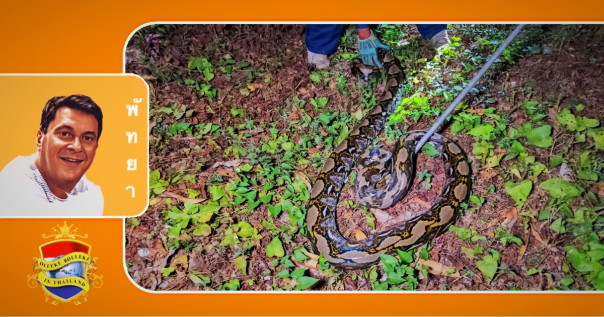 SATTAHIP:- Bewoners van een marinegebied in Chonburi kregen maandagavond te maken met een onverwachte ontmoeting toen een grote python over een weg glipte.