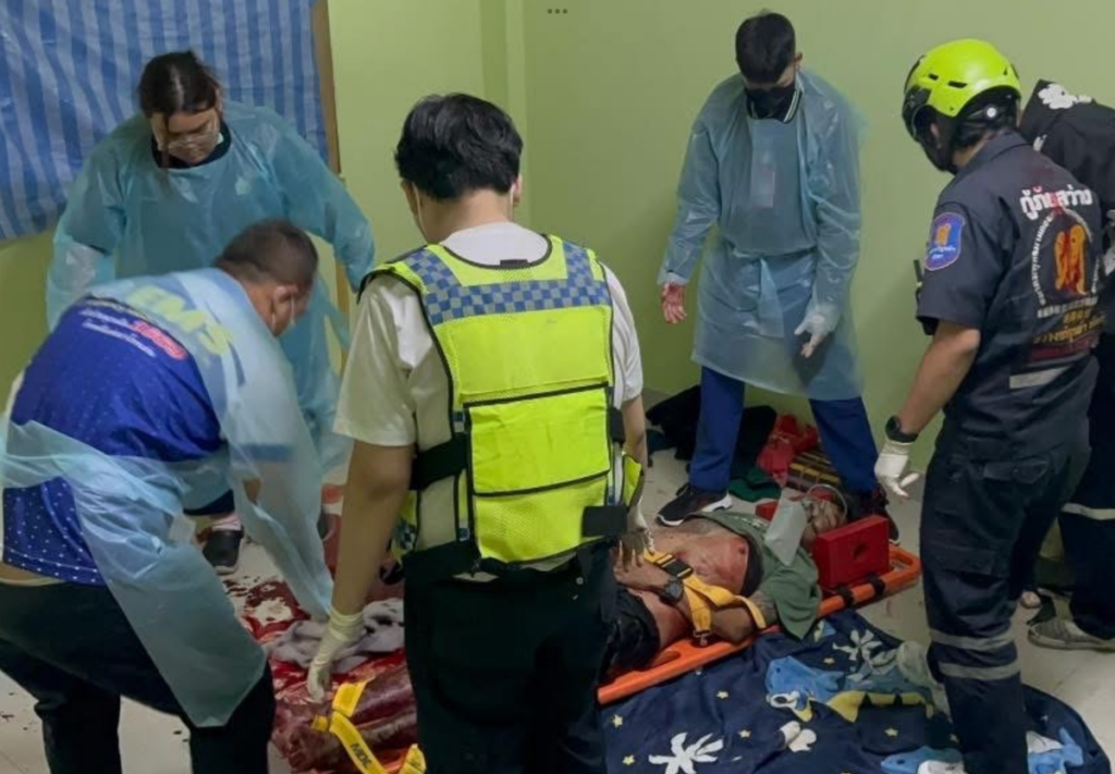 PATTAYA: Een dronkenman ruzie over geld heeft gisteren geleid tot een ernstig gewonde echtgenoot in Pattaya. Hulpverleners troffen het 42-jarige slachtoffer, Khun Ton, aan, die zwaar bloedde door een steekwond aan zijn rechterdij. Hij ontving eerste hulp voordat hij naar het ziekenhuis werd gebracht.