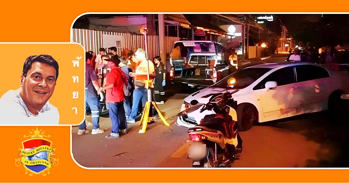 Slingerende auto ramt op de Beach Road van Jomtien een studenten busje waarbij 12 gewonden vallen