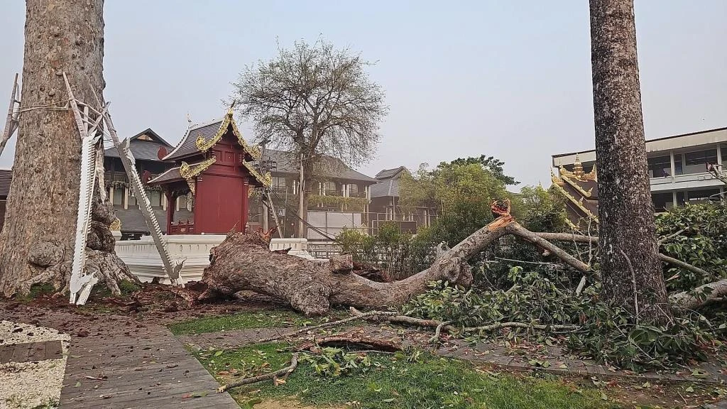 Het vallende plantendeel veroorzaakte aanzienlijke schade aan het terrein van Wat Chedi Luang. De schade trof vooral de interne infrastructuur van het klooster en diverse technische installaties, die door de kracht van de impact zijn vernield. Onder andere een zendmast en verschillende elektriciteitskabels op het tempelterrein zijn neergehaald. Autoriteiten en tempelmedewerkers zijn onmiddellijk begonnen met opruimwerkzaamheden om de veiligheid van bezoekers en monniken te waarborgen en de stroomvoorziening te herstellen.