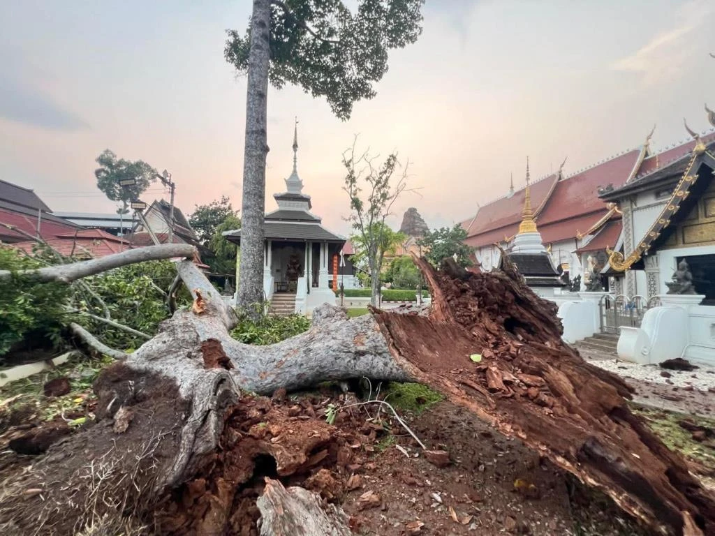 Storm beschadigt 200 jaar oude symbolische boom in Noord-Thailand; stadsbestuur van Chiang Mai zal boom nader inspecteren.