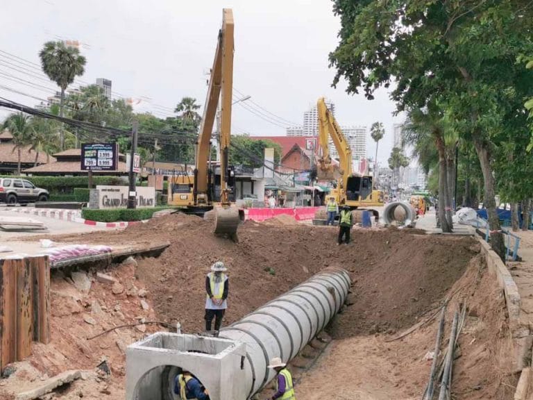 september 9, 2021 Reparatiewerkzaamheden aan de zwaar beschadigde Beach Road van Jomtien gestart Lees verder...