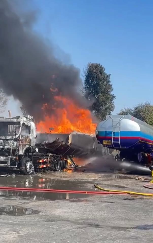 Brandweermensen kwamen in actie met watertrucks en gebruikten een mix van water en schuim om de brand te blussen en te voorkomen dat het vuur zich verder verspreidde, wat nog meer schade had kunnen aanrichten.
