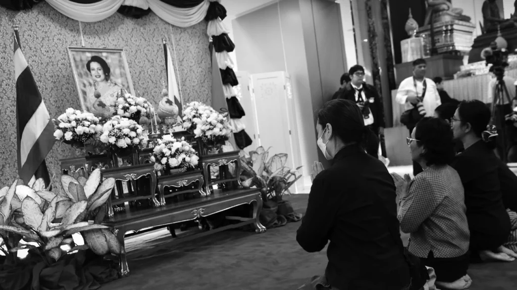 De regering roept iedereen in Thailand op om samen te rouwen en te bidden voor vrede na het overlijden van de koningin-moeder.