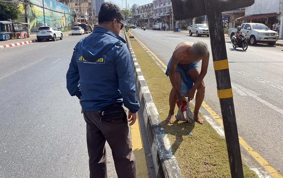 PATTAYA: Een man die blijkbaar even een “powernap” wilde doen, koos niet het beste plekje: de middenberm van de Thappraya Road, waar auto’s en motoren in een constante stroom voorbijrazen. Buurtbewoners sloegen alarm en de Tessakit-politie greep gisteren in.