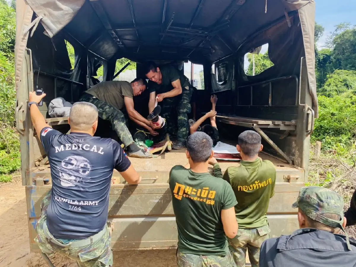ISAAN: Deze maandag morgen verloor een Thaise soldaat zijn rechtervoet en enkel door een landmijn nabij de Cambodjaanse grens bij Sisaket. De explosie vond plaats tijdens een patrouille in het Huai Ta Maria-gebied. Reddingsteams van het Tweede Legergebied evacueerden de gewonde soldaat per helicopter.