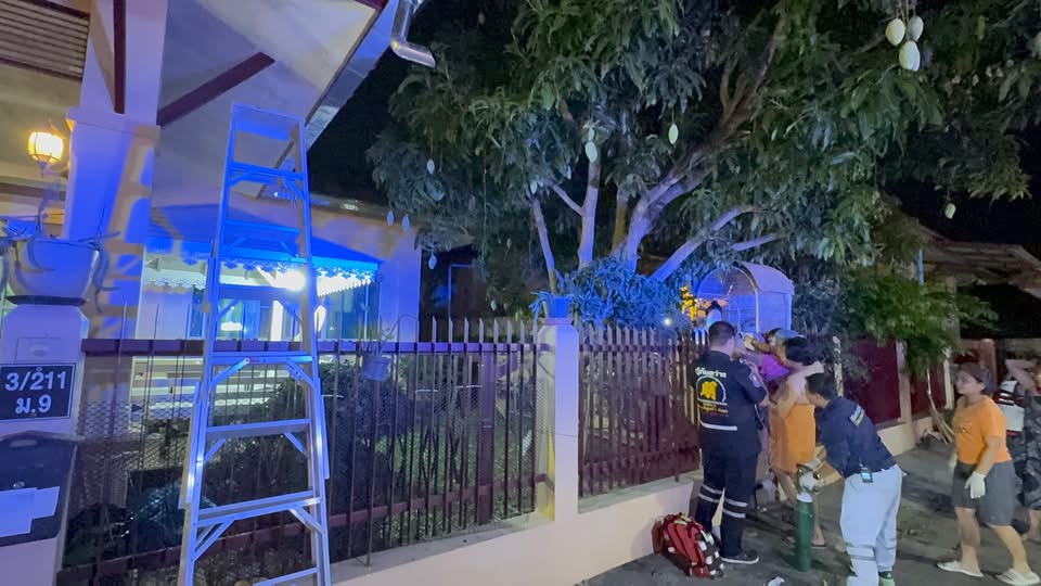 PATTAYA:  Een 50-jarige vrouw is met zware verwondingen naar het ziekenhuis gebracht nadat ze uit een mangoboom viel en met haar linkerbeen op een metalen hek terechtkwam.