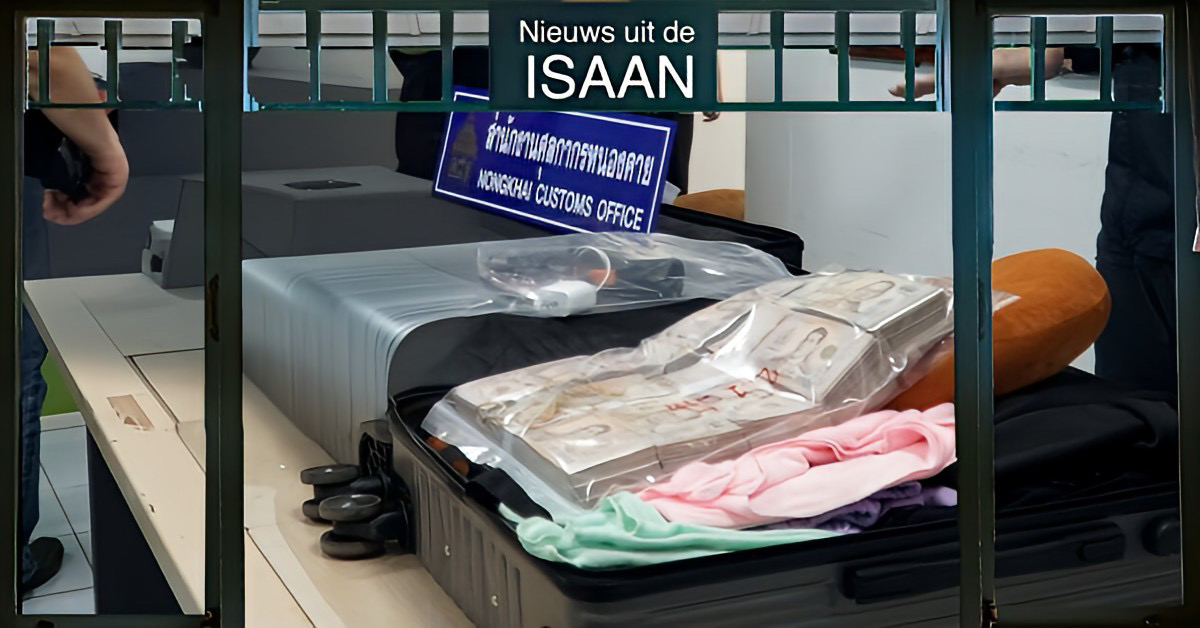 Twee geldezels betrapt bij het smokkelen van miljoenen baht bij de grensovergang van Nong Khai in Noord-Thailand