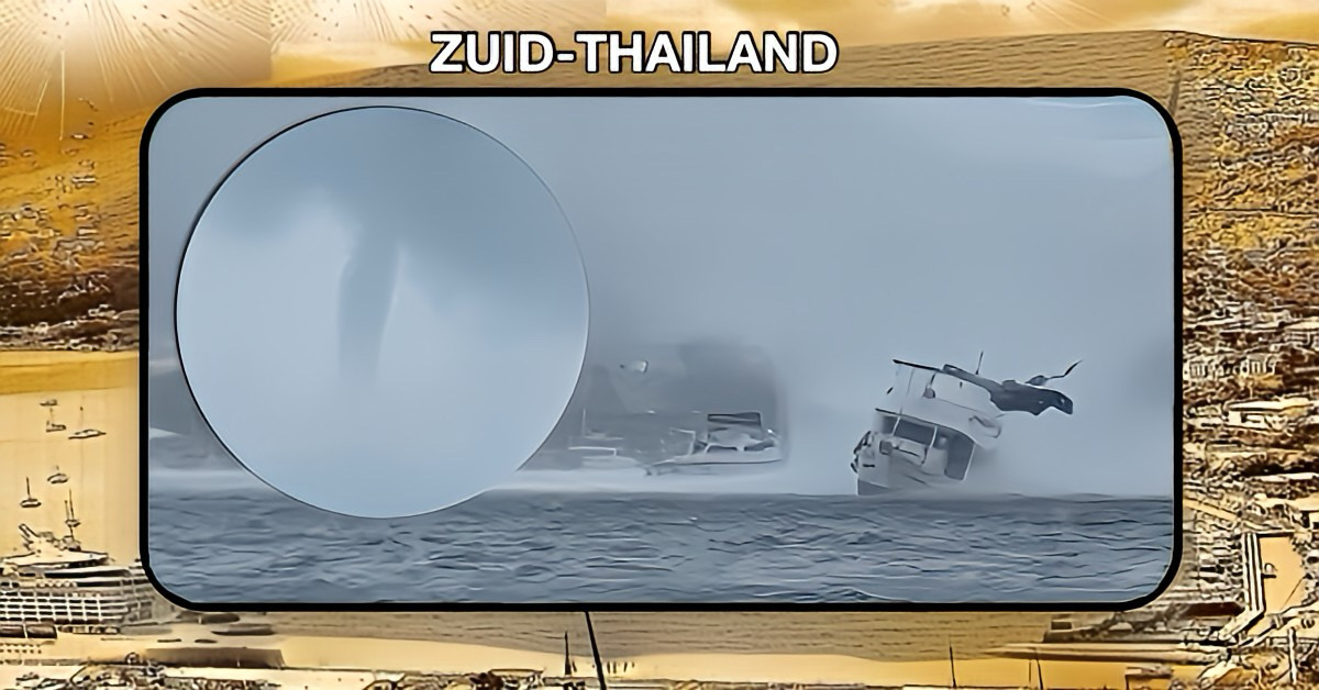 De waterspout, een roterende kolom water die zich uitstrekt van een wolk naar de zee, verscheen dicht bij de populaire Chalong Pier. Vissers en toeristen verzamelden zich om het spectaculaire schouwspel te aanschouwen onder een dreigende, donkere lucht.