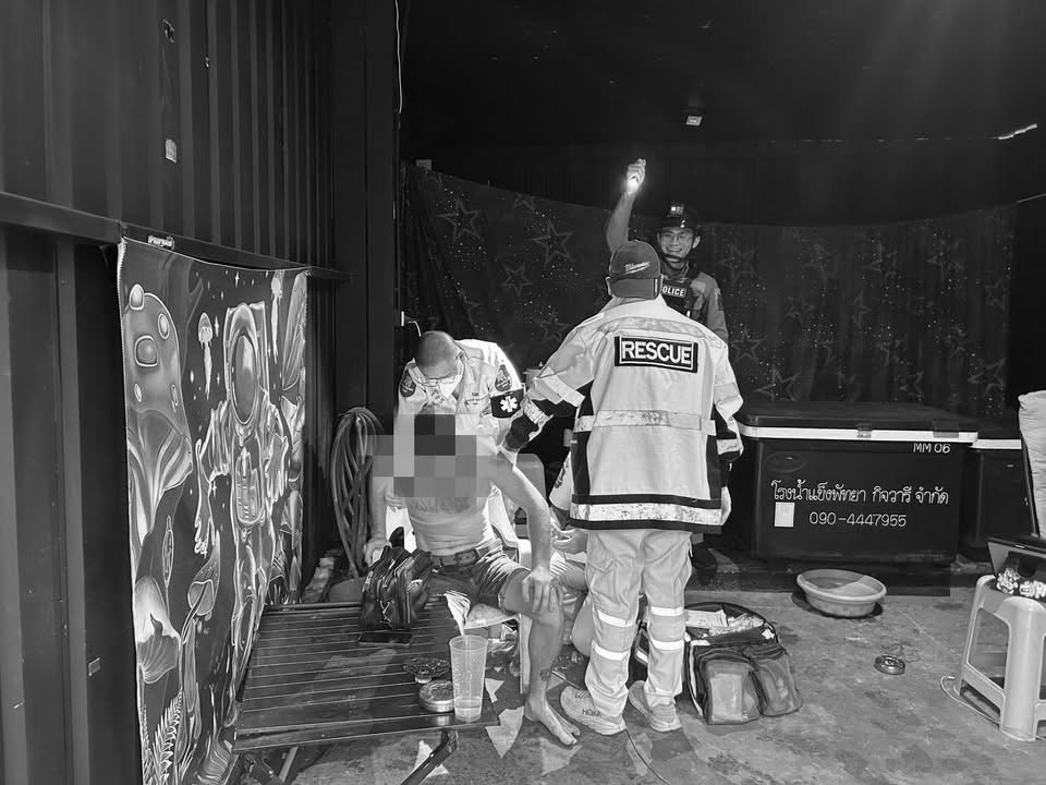 PATTAYA: Vanmorgen kreeg de reddingsdienst Sawang Borriboon een melding dat er een buitenlander neergestoken was in een appartement in Zuid-Pattaya. De politie en ambulancebroeders waren er snel bij.
