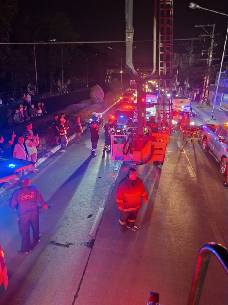 CHIANG MAi: Twee mannen zijn in de vroege ochtenduren gewond geraakt bij een ernstig elektrocutionsongeval voor het AIA-gebouw aan Mahidol Road in het hoofddistrict Chang Khlan. De hulpdiensten werden om 04.00 uur gewaarschuwd nadat een melding binnenkwam over een persoon die vastzat op een stroommast.