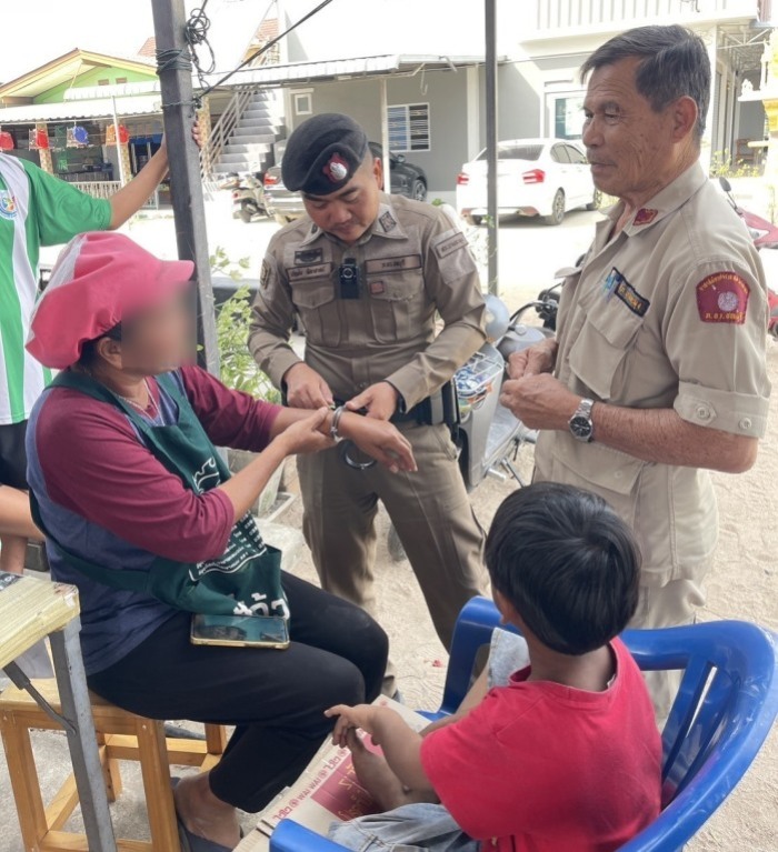 PATTAYA: Dit is er eentje voor in de boeken! Een 55-jarige vrouw die noedels verkoopt, kreeg de schrik van haar leven toen haar kleinzoon van vijf haar in de boeien sloeg. Hij dacht dat het speelgoed was! De politie moest eraan te pas komen om haar te bevrijden.
