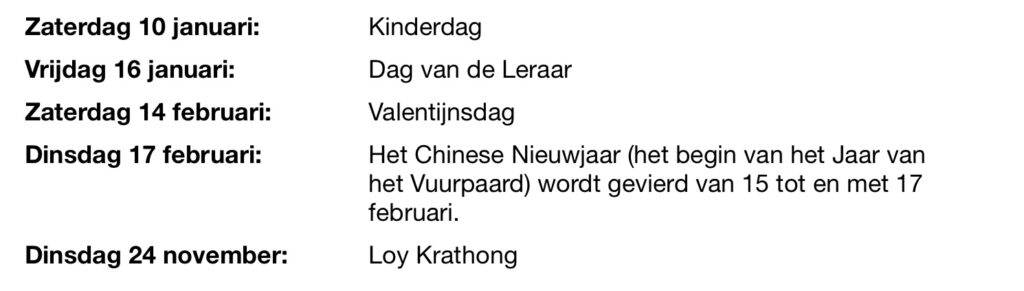Andere festivals die geen officiële feestdagen of boeddhistische feestdagen zijn: