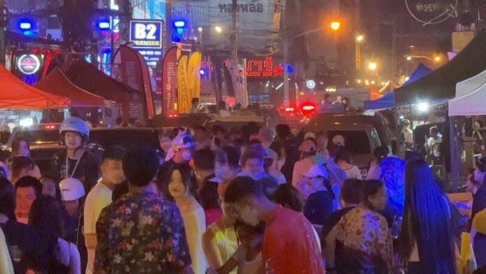 Gisteravond trokken grote menigten naar onder meer Na Muang Road, Ruenrom Road en Srichan Road, waar het “Sticky Rice Road Songkran Festival” werd opgebouwd. Mensen stonden aan weerszijden van de wegen en zaten in de achterbakken van pick‑uptrucks, while ze elkaar natspetterden terwijl muziek uit tijdelijke podia van lokale ondernemers klonk. DJ’s hielden de sfeer erin en trokken zowel lokale bewoners als toeristen.