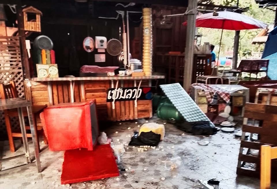 ISAAN: Plai Biang Lek, een solitair levende olifant, heeft voor de derde keer een bekend restaurant nabij Khao Yai National Park in Korat geruïneerd. Vanmorgen, langs Thanarat Road in Pak Chong, Nakhon Ratchasima, werd er aanzienlijke schade aangericht in het restaurant, waarbij meubilair omvergeworpen en verspreid lag.