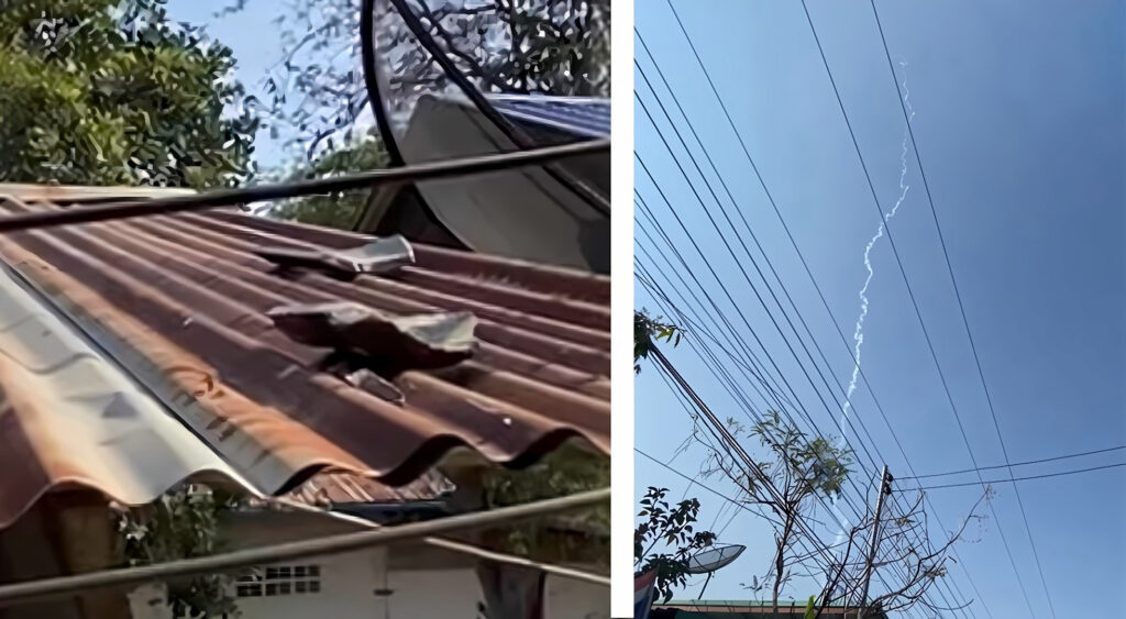 ISAAN: In een verrassende wending van gebeurtenissen werd gisteren een woning in het dorp Ban Tha Kho, gelegen in de provincie Yasothon, getroffen door een zelfgemaakte raket. Het voorval, dat zich omstreeks 14:20 uur voordeed, resulteerde gelukkig niet in persoonlijke slachtoffers, aangezien er op dat moment niemand in de woning aanwezig was.