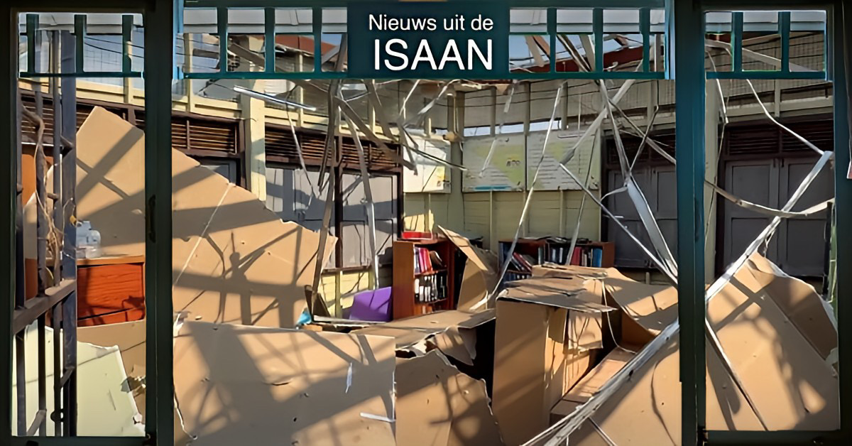 KHON KAEN:- Een krachtige zomerstorm heeft de Ban Thung Pong School in Thung Pong zwaar beschadigd. Het dak van de school werd weggeblazen en nabijgelegen woningen kregen ook te maken met de ravage van de storm.
