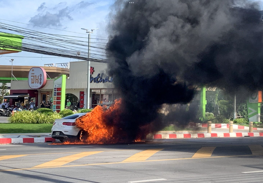 HUA HIN: Een Amerikaan beleefde een dag om nooit te vergeten toen zijn glimmende Mercedes-Benz ineens in vlammen opging. Het gebeurde gistermiddag, zo rond half vijf, op de Phetkasem Road, vlakbij een tankstation. De politie kreeg een belletje dat er een auto in de fik stond. Ze waren er samen met de brandweer snel bij, maar toch liep de schade op tot zo’n drie miljoen baht.