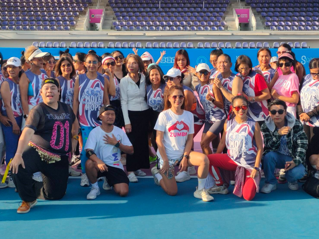 HUA HIN: Afgelopen zaterdagmiddag gaf Khun Worasuda Worachatiudompong, lerares Am en voorzitter van de Zumba Club in Hua Hin, een dansvoorstelling met 150 Zumba-dansers, zowel mannen als vrouwen, afkomstig uit Thailand en het buitenland. De opbrengst van dit evenement werd gedoneerd aan een organisatie in Bangkok die hulp bood aan de slachtoffers van de overstromingen in Hat Yai, in de provincie Songkhla, Zuid-Thailand.